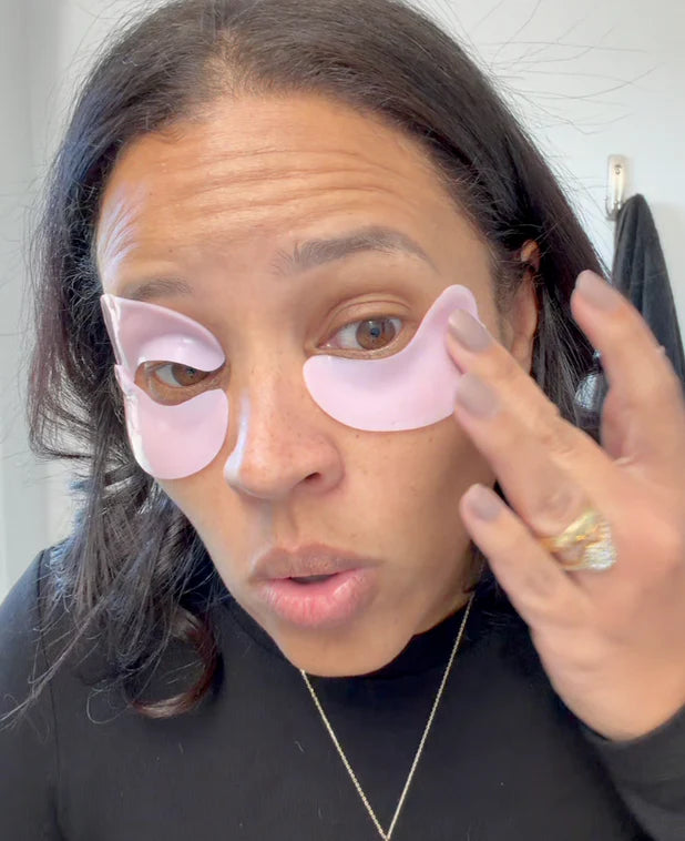 Pembe bantları göz altlarınıza yerleştirin. Bu ilk parlak katman, formülün tamamen yüklendiği anlamına gelir; kolajen, peptitler ve aydınlatıcı aktifler anında çalışmaya başlar.